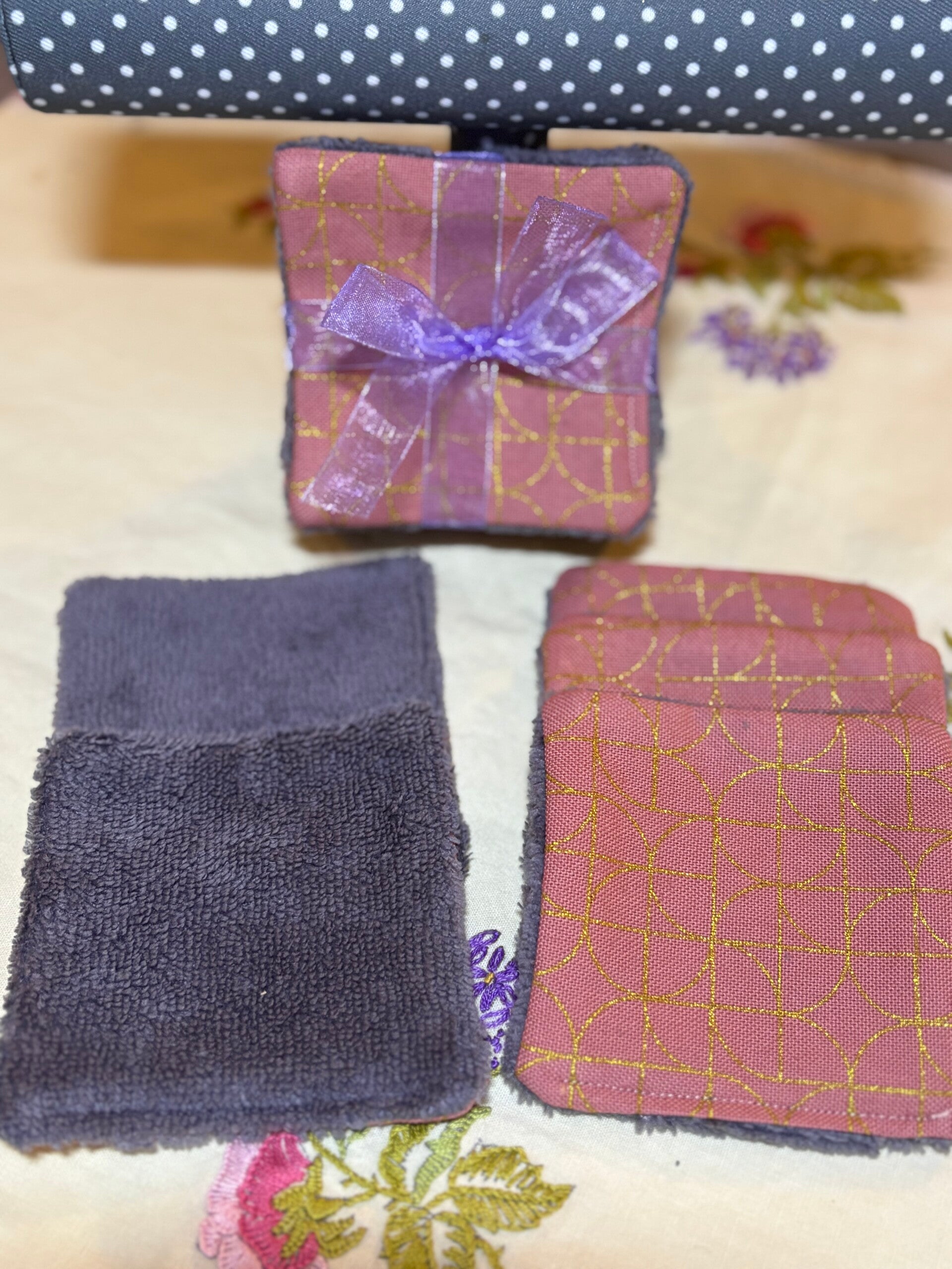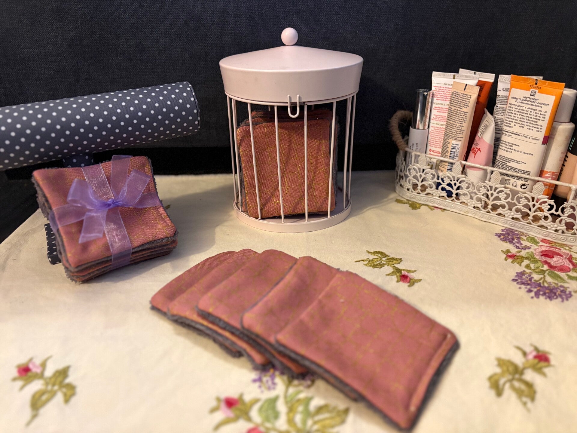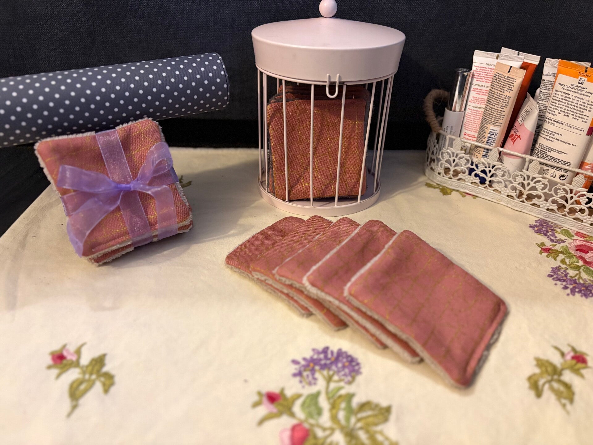 Lot de lingettes démaquillantes en tissus fibre de bambou Oeko-Tex Standart 100. Le dessus est en 100% coton Oeko-Tex.
