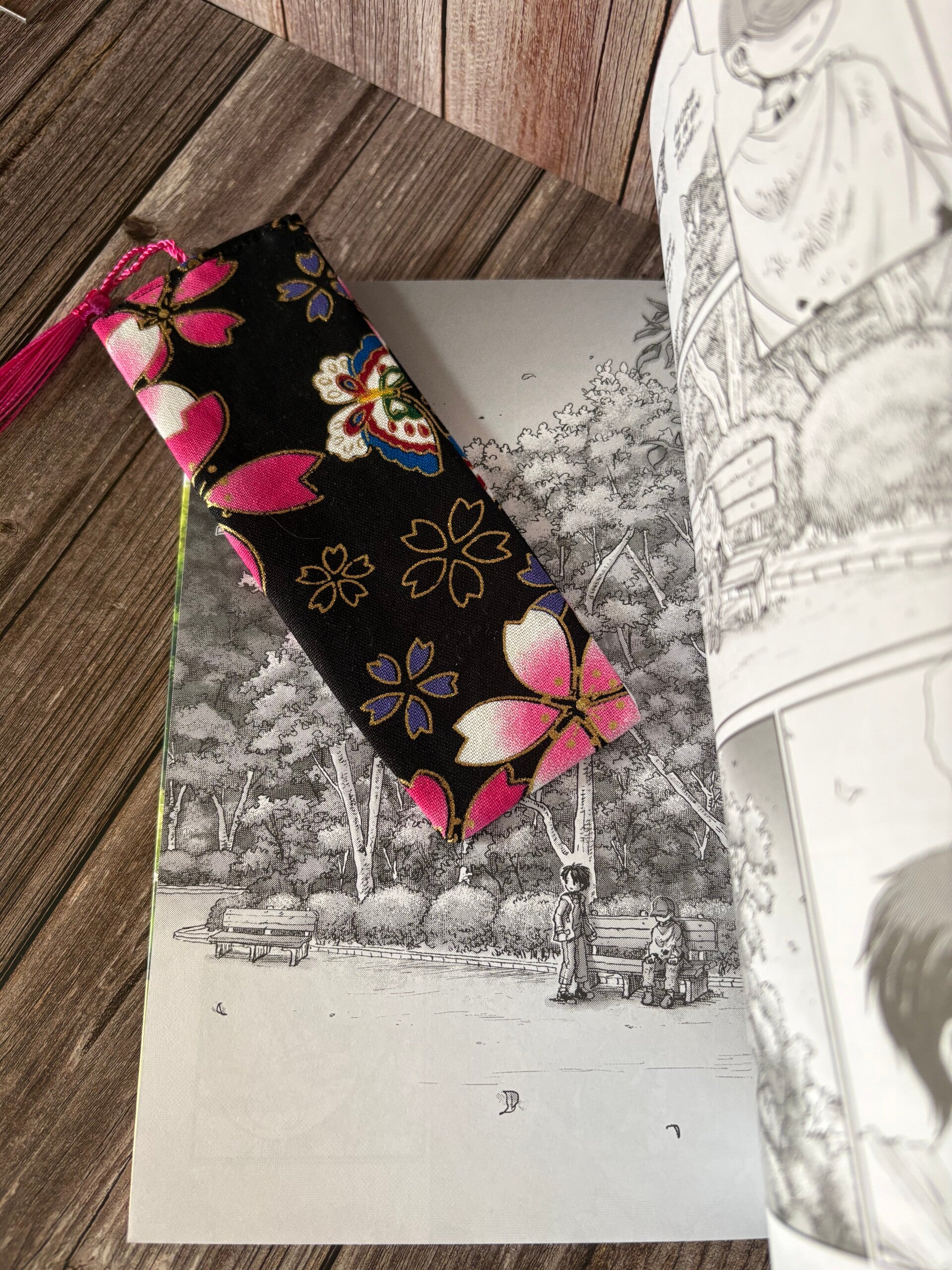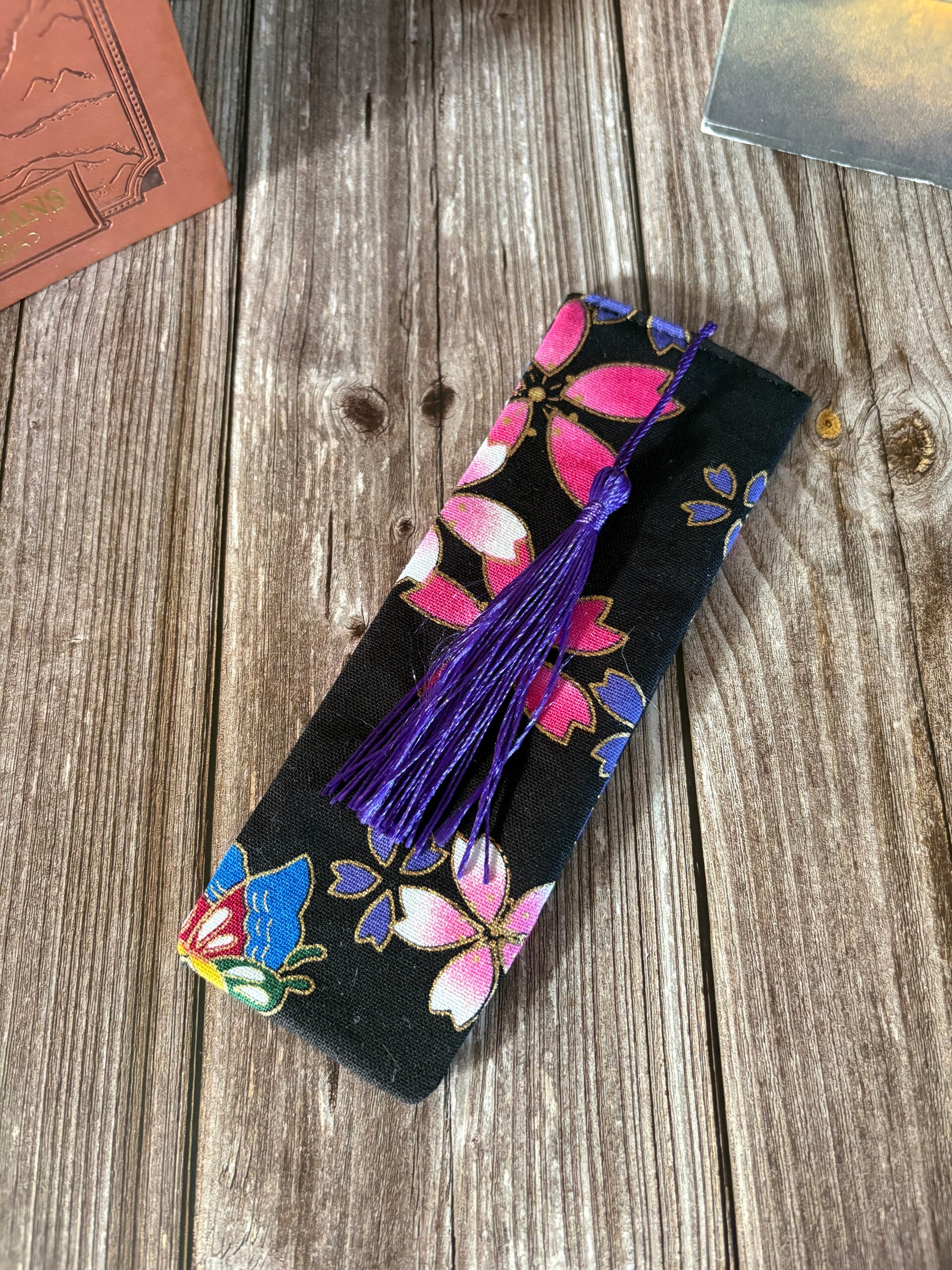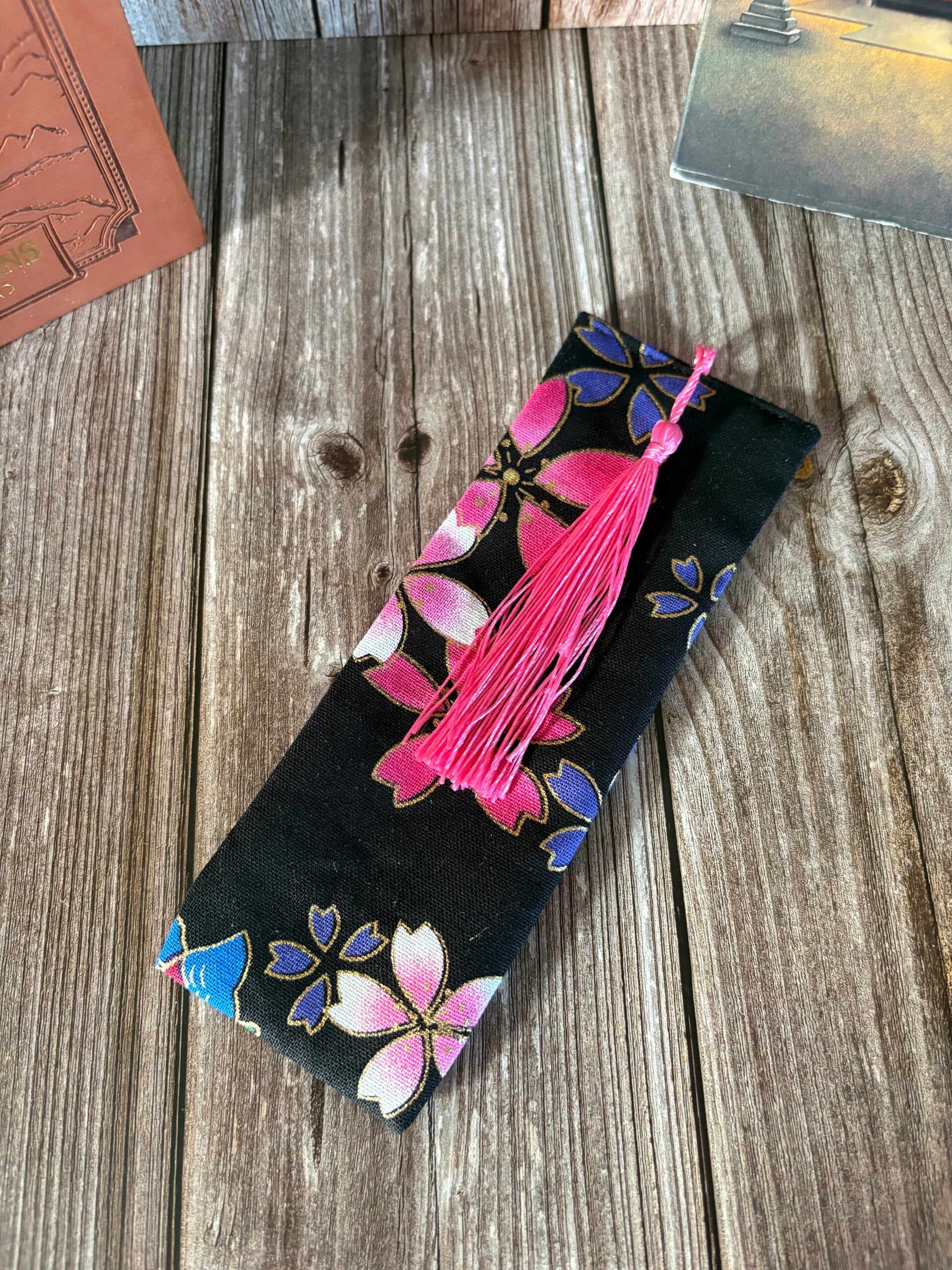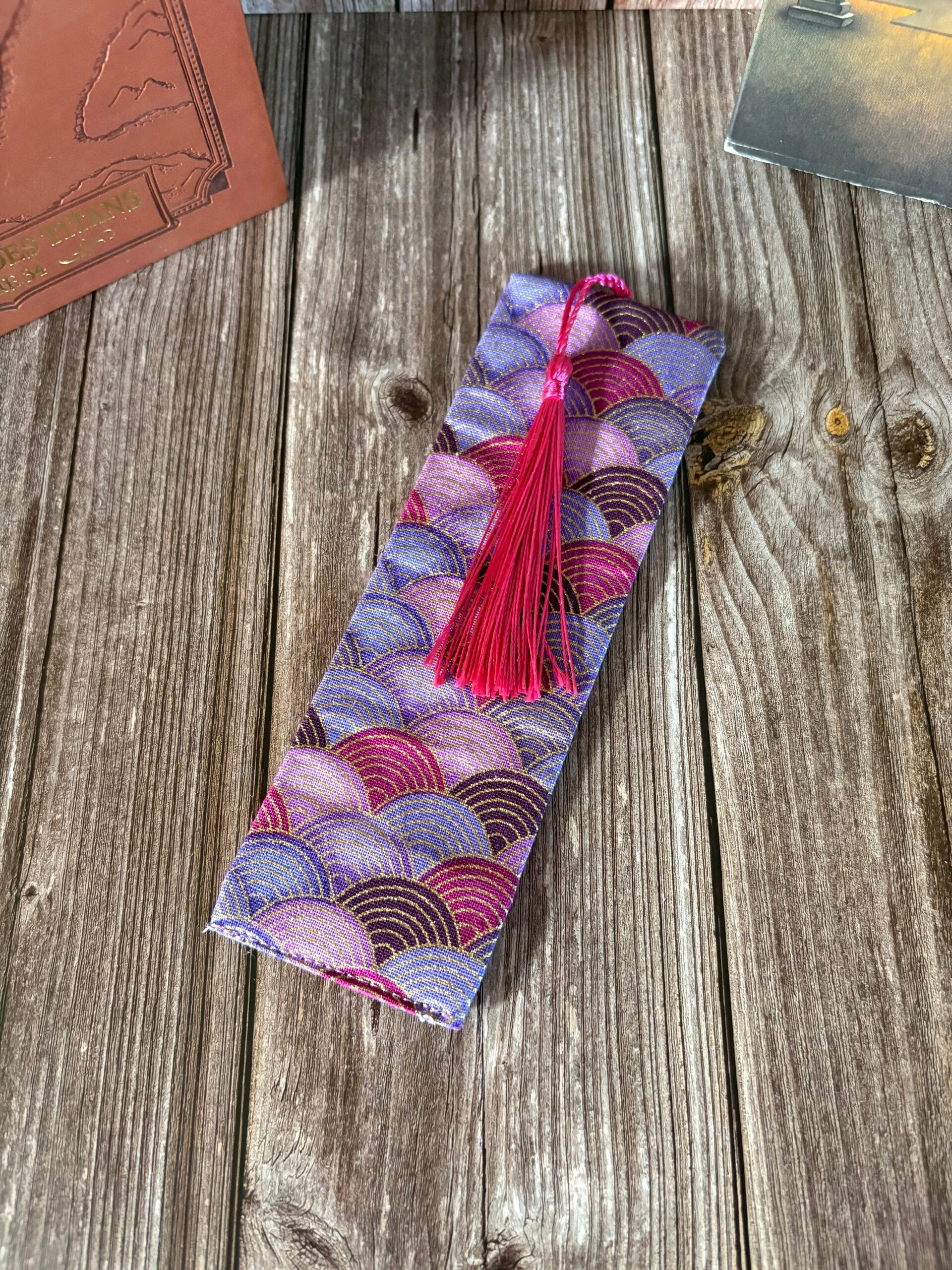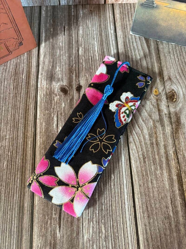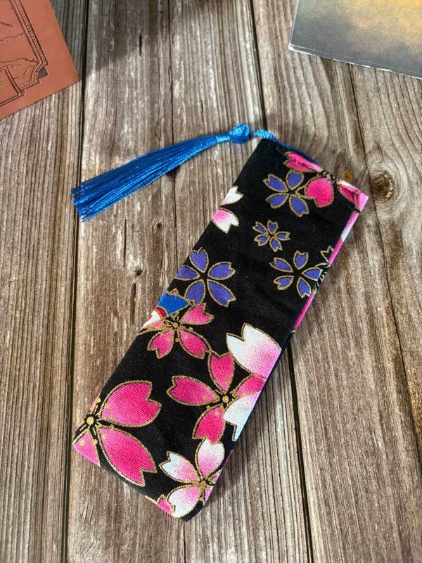 Marque-page en tissu avec insert en carton et pompon.